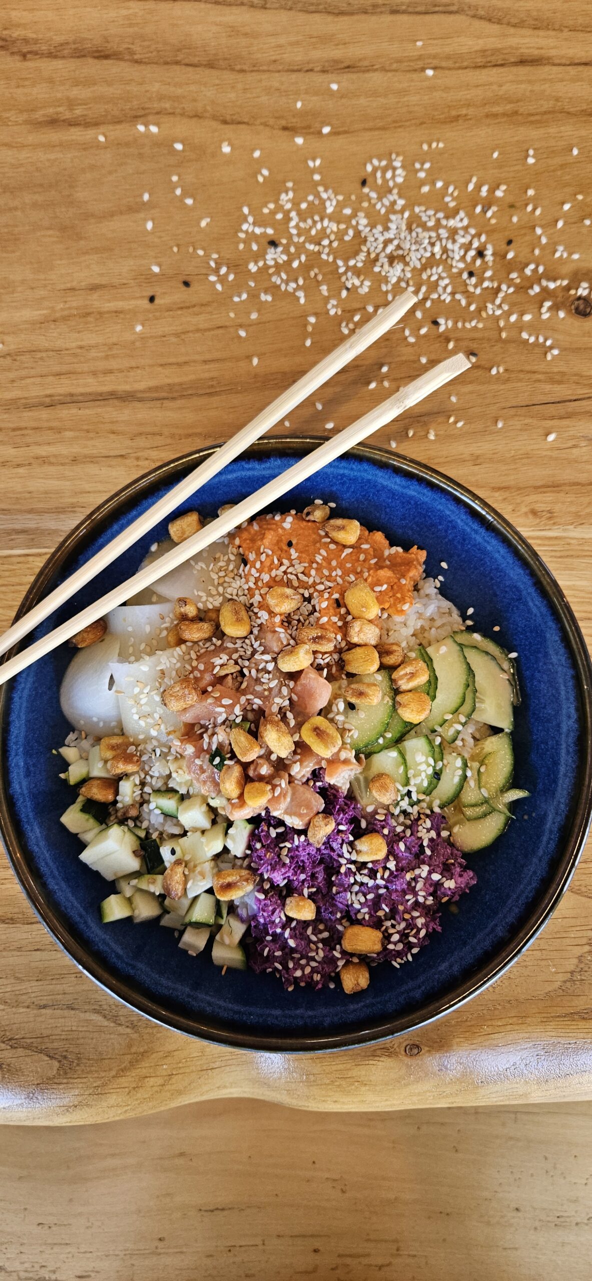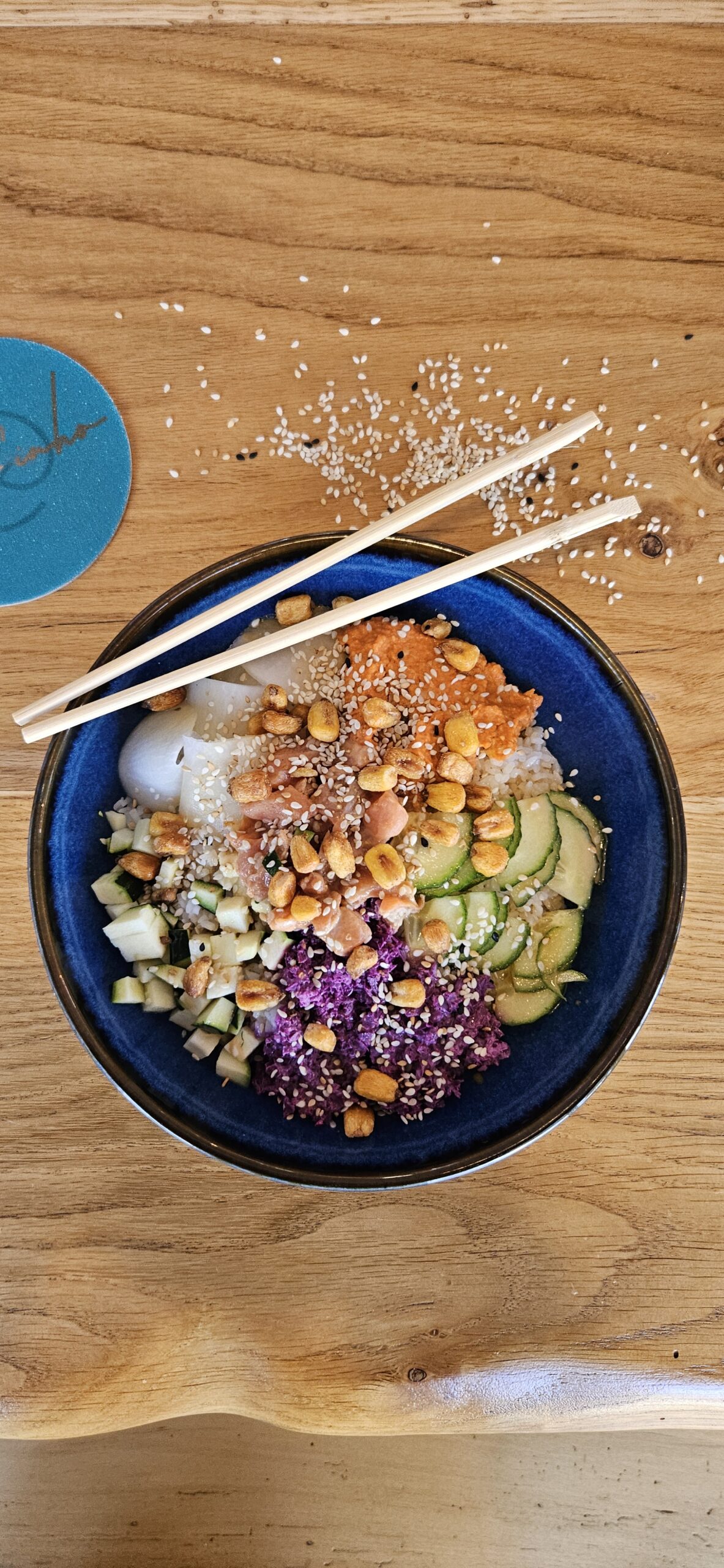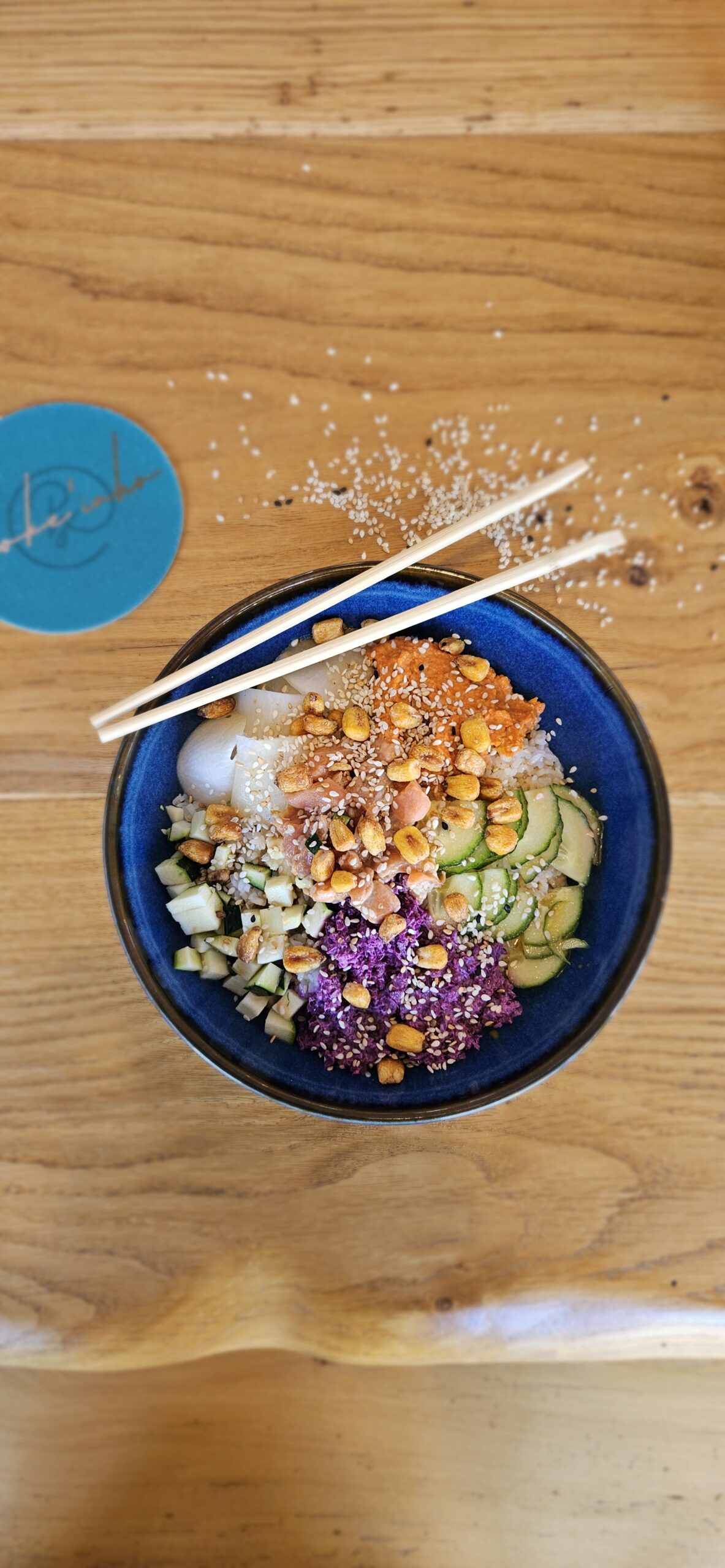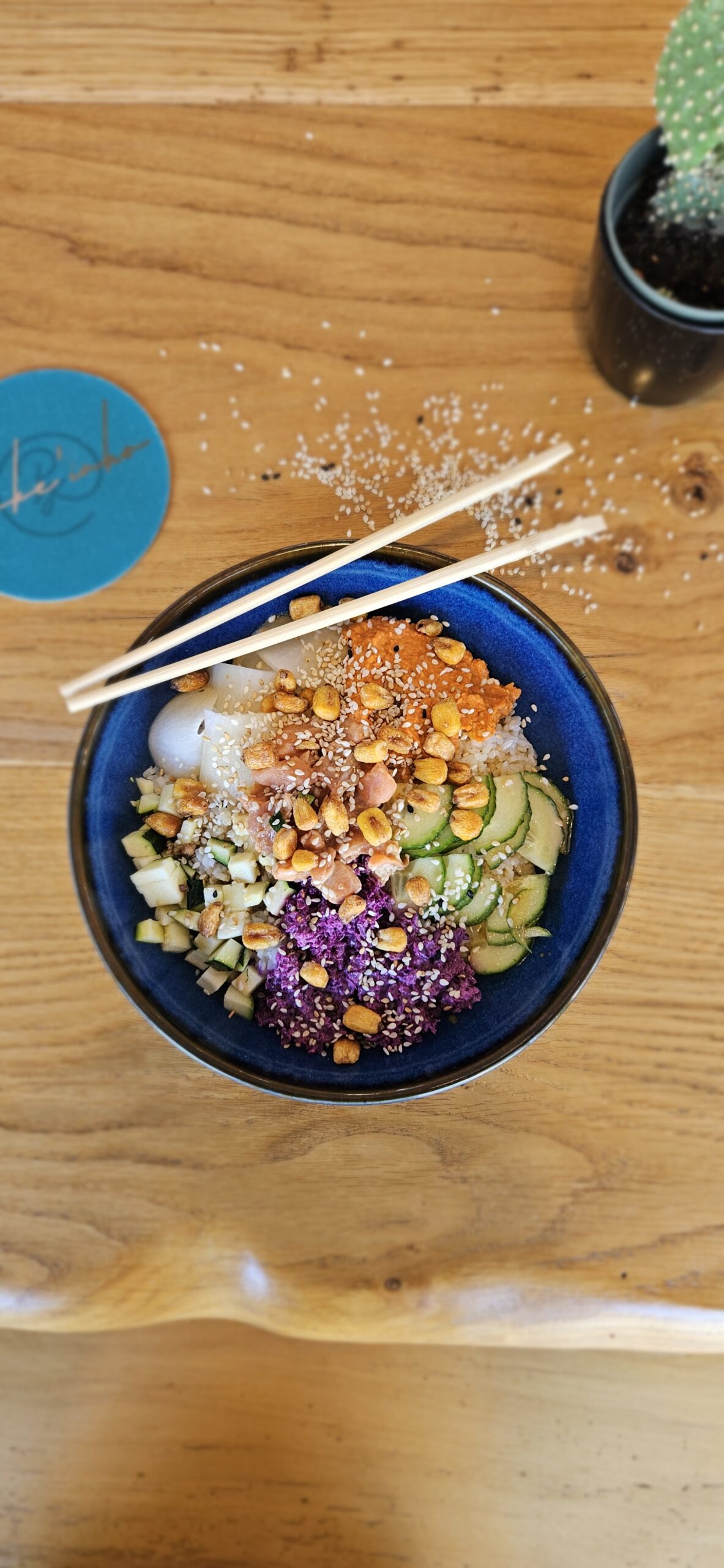 Notre carte des pokes bowls est une véritable invitation au voyage culinaire. Chaque pokes bowl est une création unique, alliant des ingrédients frais et savoureux pour offrir une expérience gustative inoubliable. Choisissez parmi une sélection variée de bases, de protéines, de légumes croquants et de garnitures gourmandes, le tout sublimé par nos sauces maison. Que vous soyez amateur de thon mariné, de poulet pané au panko, de tartare de thon, nos pokes bowls sont conçus pour satisfaire toutes vos envies. Venez explorer notre menu et personnalisez votre pokes bowl pour un moment de plaisir sur mesure !